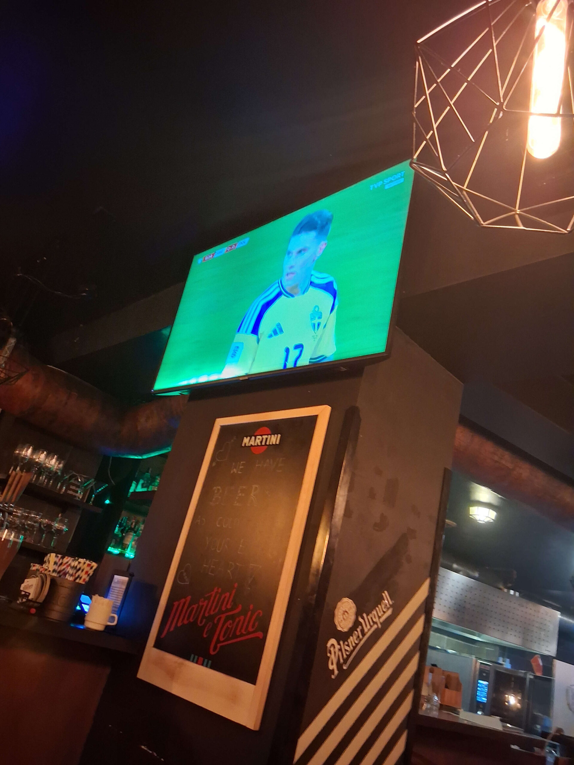 Senare på kvällen hade jag möjlighet att bevittna ännu en drabbning – nämligen den avgörande matchen mellan Sverige och Polen för att ta sig till fotbolls-VM. Jag var ute i god till en sports bar och fann den enda sittplatsen kvar som ännu inte var reserverad. Winner Burger och Kozel-öl i väntan på avspark. Jag avslöjade för min granne att jag var svensk. Han log och uppvisade inga tendenser att vilja misshandla mig. Han var helt enkelt trevlig. Ja, stämningen i lokalen var god, men inte löjligt uppskruvad som den kan vara på såna barer i andra länder. Inga landslagströjor syntes till.
